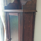 DIYで創作されたアンティークなキャビネットの扉ガラスに、梨地柄のキャセドラルクリアをご使用いただいた例です。