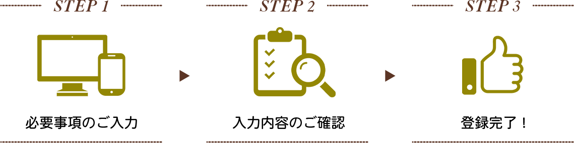 所要時間わずか数分!たったの3ステップで簡単に登録できます。